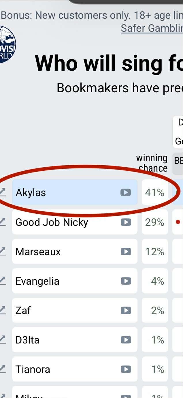 Όπως όλα δείχνουν η μεγάλη απήχηση που σημειώνει ο Akylas με το κομμάτι «Ferto», στα προγνωστικά στοιχήματα του «Sing for Greece», οδήγησε την χώρα στην 5η θέση.