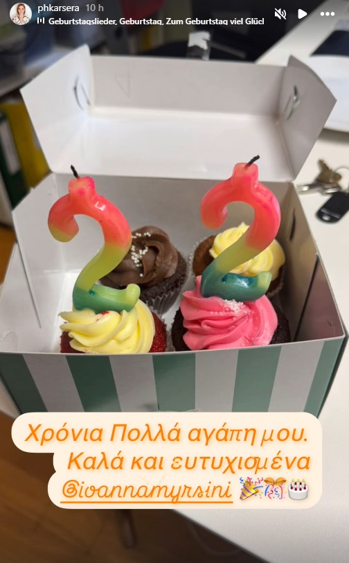 Τα 22α γενέθλια της είχε χθες Τετάρτη 22 Οκτωβρίου η μεγάλη κόρη της προεδρικής οικογένειας του νησιού μας. Η Ιωάννα βρίσκεται στο εξωτερικό για σπουδές και η μαμά της Φιλίππα Καρσερά αγόρασε τέσσερα cupcakes με δύο κεράκια που σχημάτιζαν τον αριθμό 22 και αφού μίλησε με την κόρη της σε βιντεοκλήση γιόρτασαν εξ αποστάσεως τα γενέθλια της.