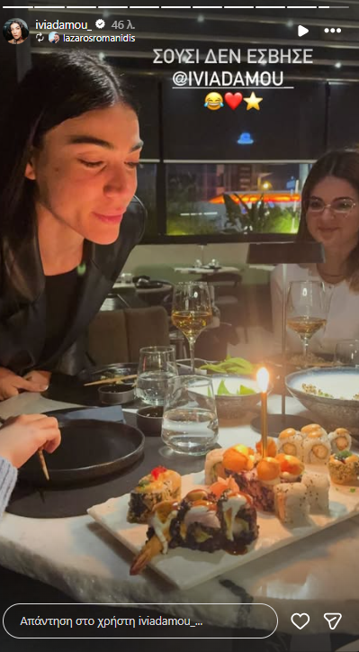 Όπως θα δείτε και στην εικόνα πιο κάτω, από story που δημοσίευσε, φίλος της, η εορτάζουσα, σβήνει το κεράκι της, το οποίο βρισκόταν τοποθετημένο επάνω σε σούσι.