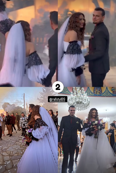 Συγκεκριμένα η Ιωάννα Λαμπροπούλου, επέλεξε να αναρτήσει σε ένα collage, 4 στιγμιότυπα από την είσοδο και την έξοδο του ζευγαριού στην εκκλησία.