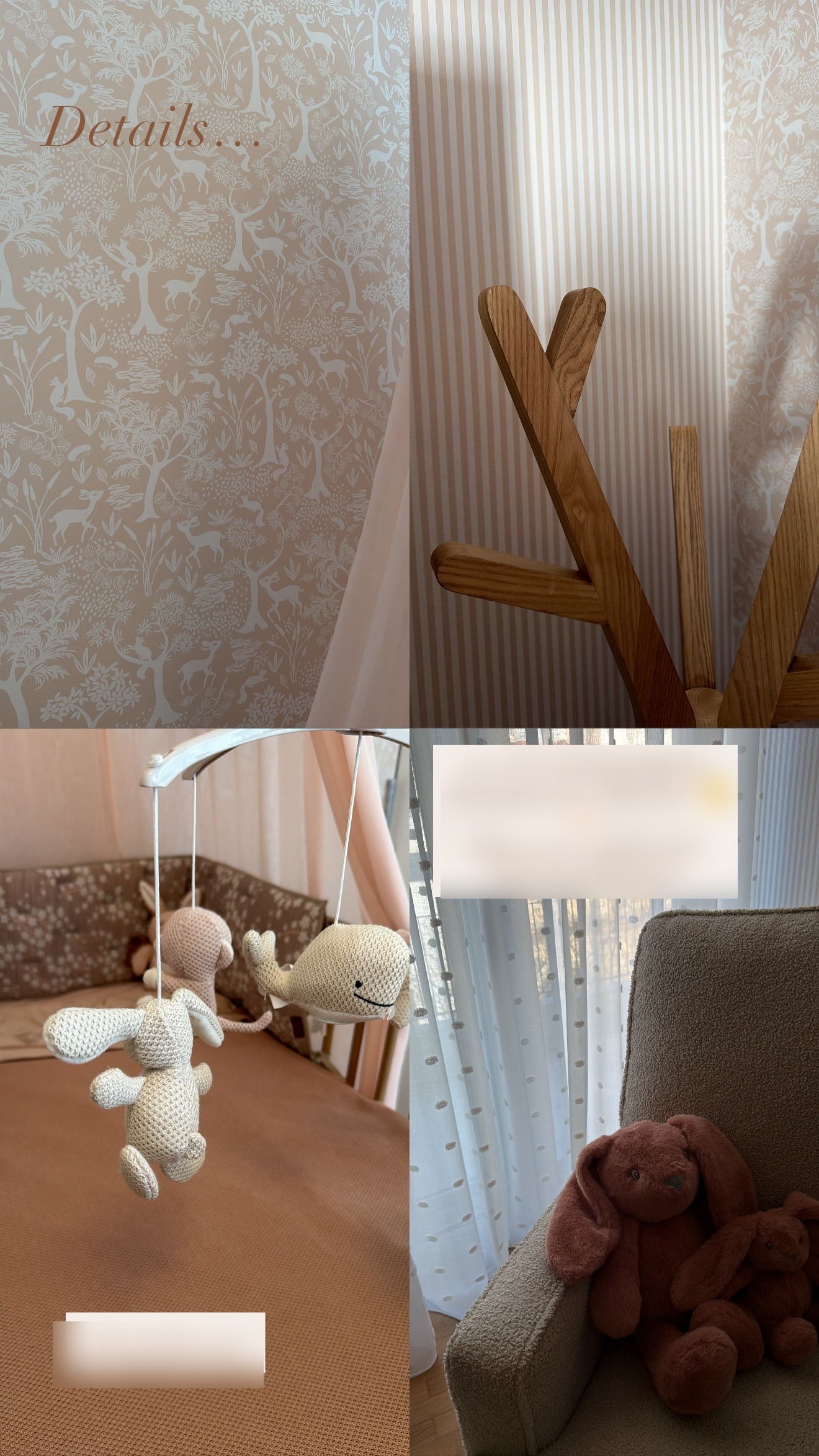 Σε πρόσφατη ανάρτησή της, η παρουσιάστρια δημοσίευσε ένα νέο βίντεο, παρουσιάζοντας ακόμη περισσότερα στοιχεία από το δωμάτιο της μικρής. Ο χώρος κινείται σε απαλούς τόνους ροζ, λευκού και σομόν, ενώ ξεχωρίζει η ταπετσαρία με μοτίβα από ελάφια και δέντρα, δημιουργώντας μια παραμυθένια και ζεστή ατμόσφαιρα.