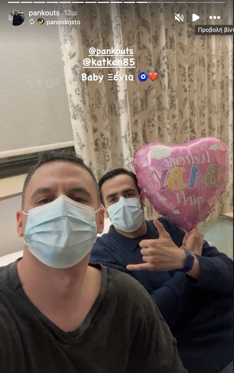 Μέσα από stories που ανήρτησε στον προσωπικό του λογαριασμό στο instagram, ο ίδιος, μοιράστηκε ένα τρυφερό στιγμιότυπο μέσα από το μαιευτήριο, έχοντας στο πλευρό του φίλους του, που πήγαν να επισκεφθούν το μωράκι τους.