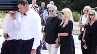 Στην τελευταία του κατοικία συνόδευσαν τον ηθοποιό φίλοι, συνάδελφοι και συγγενείς. Ανάμεσα τους και η μοναχοκόρη του Σμαράγδα Καρύδη η οποία εμφανώς καταβεβλημένη και κρατώντας σφικτά το χέρι του συντρόφου της, Θοδωρή Αθερίδη ακολουθούσε την πομπή με το φέρετρο του μπαμπά της. Δείτε τις σχετικές εικόνες: