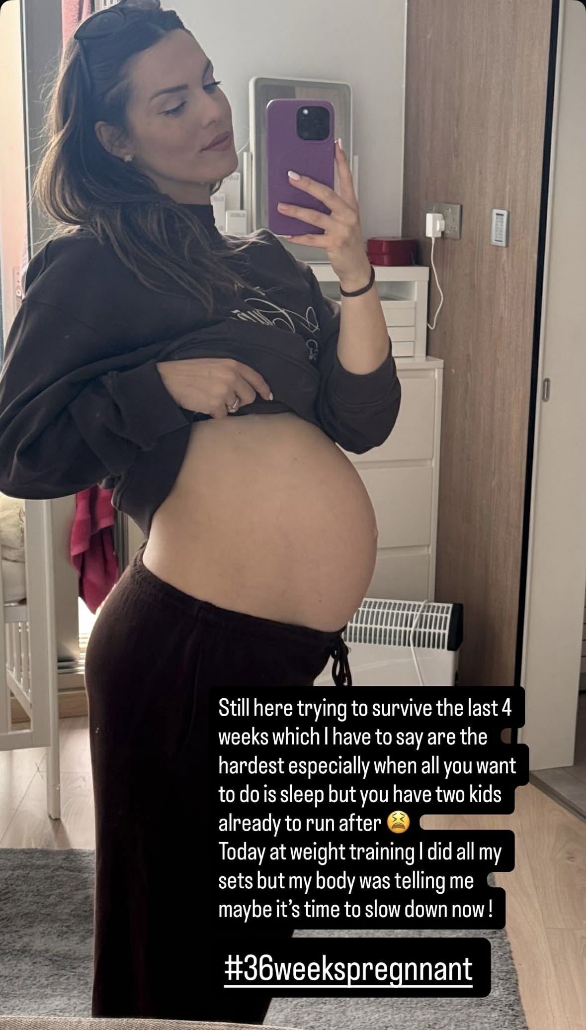 «Ακόμα εδώ προσπαθώντας να επιβιώσω τις τελευταίες τέσσερις εβδομάδες, που οφείλω να πω ότι είναι οι δυσκολότερες, ειδικά όταν το μόνο που θέλω είναι να κοιμάμαι αλλά έχεις ήδη δύο παιδιά να τρέχεις από πίσω. Σήμερα κατά τη διάρκεια της άσκησής μου έκανα όλα τα sets αλλά το σώμα μου μού έλεγε ότι ίσως ήρθε η ώρα να ρίξω ρυθμούς», έγραψε στην εικόνα. Δείτε το σχετικό στιγμιότυπο που εντοπίσαμε στα social media: