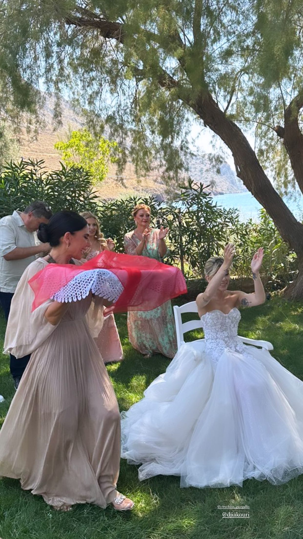 Από τις εικόνες είδαμε και την υπέροχη αέρινη δημιουργία στο χρώμα της άμμου που επέλεξε ειδικά για την ημέρα η Μαρία Ιωάννου. Το υπέροχο φόρεμα που αποτελεί ιδανικό για ένα γάμο σε ένα ελληνικό νησί φέρει την υπογραφή της σχεδιάστριας Maria Lucia Hohan. Η σχεδιάστρια από τη Ρουμανία είναι γνωστή για τις ρομαντικές και εντυπωσιακές δημιουργίες της και πολλές είναι οι fashion lovers που την επιλέγουν σε ξεχωριστές περιστάσεις.
