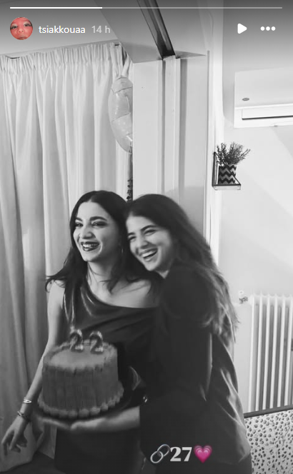 Η Μαρία Τσίακκα, θέλησε να ευχηθεί και διαδικτυακά στη μεγαλύτερη αδερφή της, δημοσιεύοντας ένα κοινό τους στιγμιότυπο και γράφοντας στο κάτω μέρος του story τον αριθμό της ηλικίας της, 27.