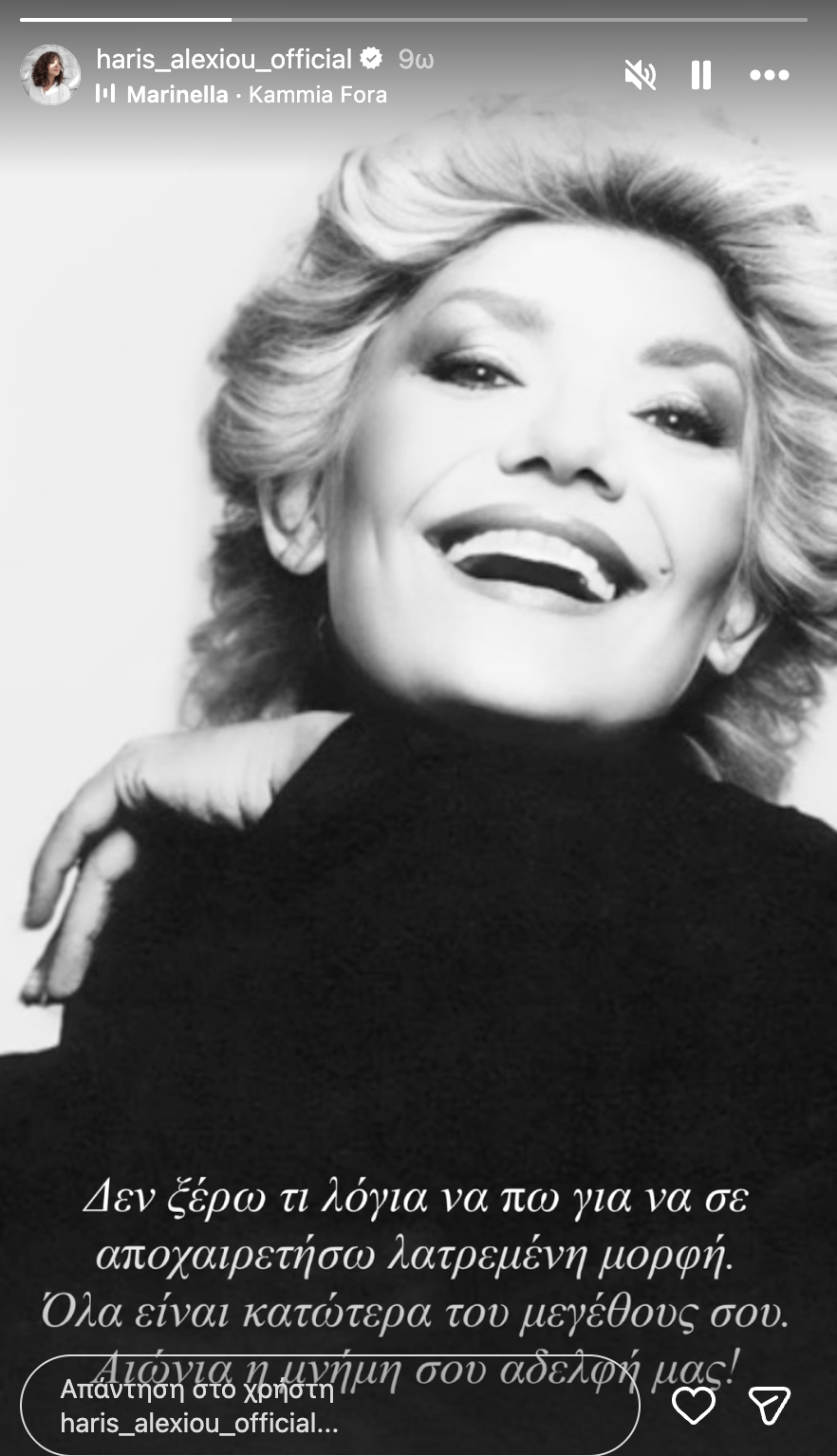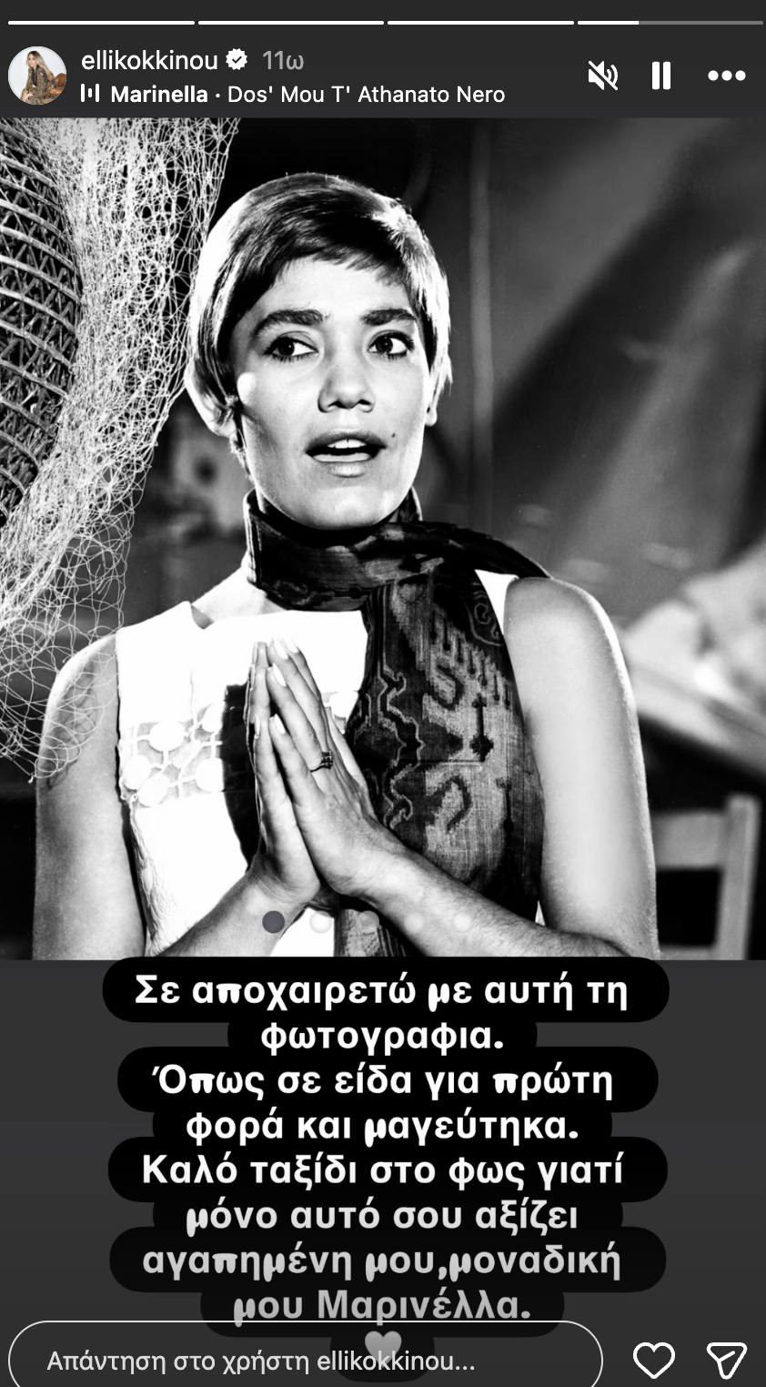 Ο καλλιτεχνικός κόσμος στην Ελλάδα, αποχαιρετά τη Μαρινέλλα, με φωτογραφίες της, τιμώντας όχι μόνο την καριέρα της αλλά και την προσωπικότητά της.