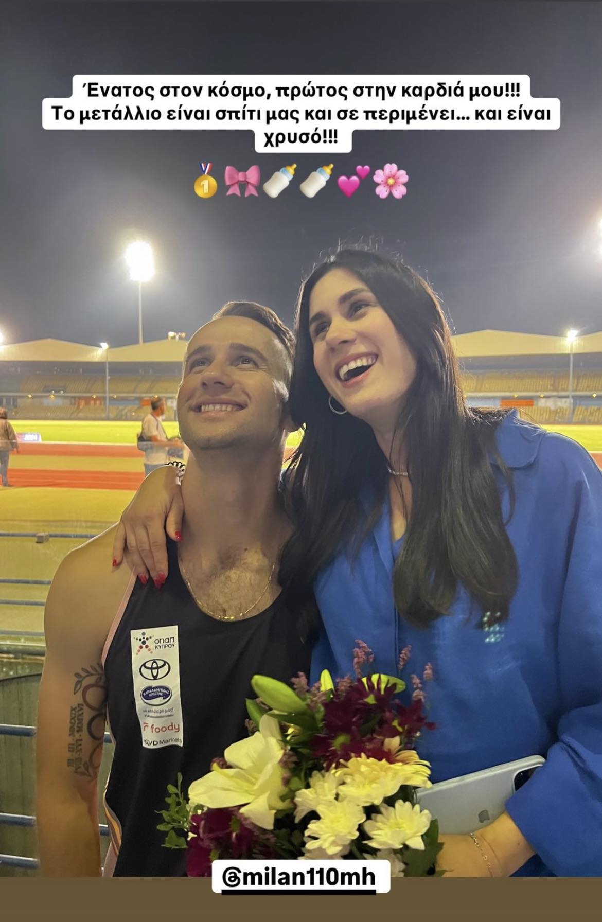 Συγκινητική ήταν και η ανάρτηση της συζύγου του αθλητή, Νίκης Σταύρου, η οποία έγραψε: «Ένατος στον κόσμο, πρώτος στην καρδιά μου. Το μετάλλιο είναι στο σπίτι και σε περιμένει… και είναι χρυσό».