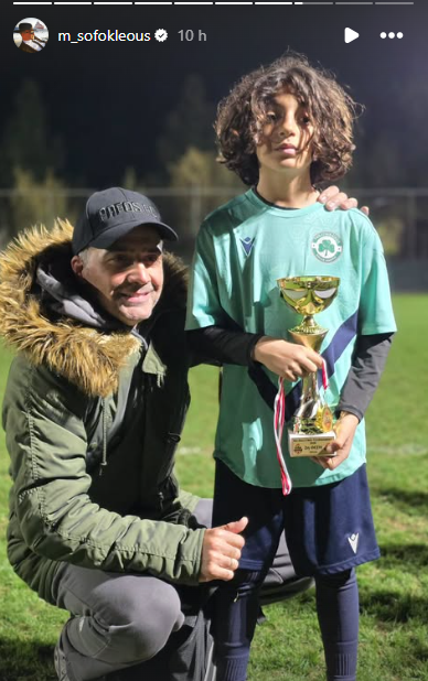 Στη συνέχεια, μας χάρισε ακόμη ένα στιγμιότυπο στο οποίο πατέρας και γιος ποζάρουν χαρούμενοι και ευδιάθετοι στον φωτογραφικό φακό. Ο μικρός, κρατά στα χέρια του ένα βραβείο που κέρδισε η ομάδα του, κατακτώντας τη 2η θέση, μετά το τέλος του ποδοσφαιρικού αγώνα. Δείτε το σχετικό βίντεο & εικόνα που εντοπίσαμε στα social media: