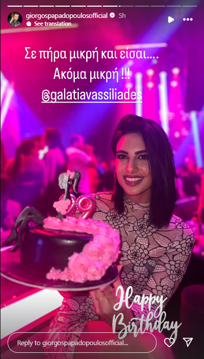 Χαρακτηριστικά αναρτώντας εικόνα στην οποία η σύντροφός του κρατάει στα χέρια της τη γενέθλια τούρτα της, ο Γιώργος Παπαδόπουλος, σχολιάζει, πειράζοντάς την: «Σε πήρα μικρή και είσαι...ακόμα μικρή». Δείτε τις εικόνες πιο κάτω: