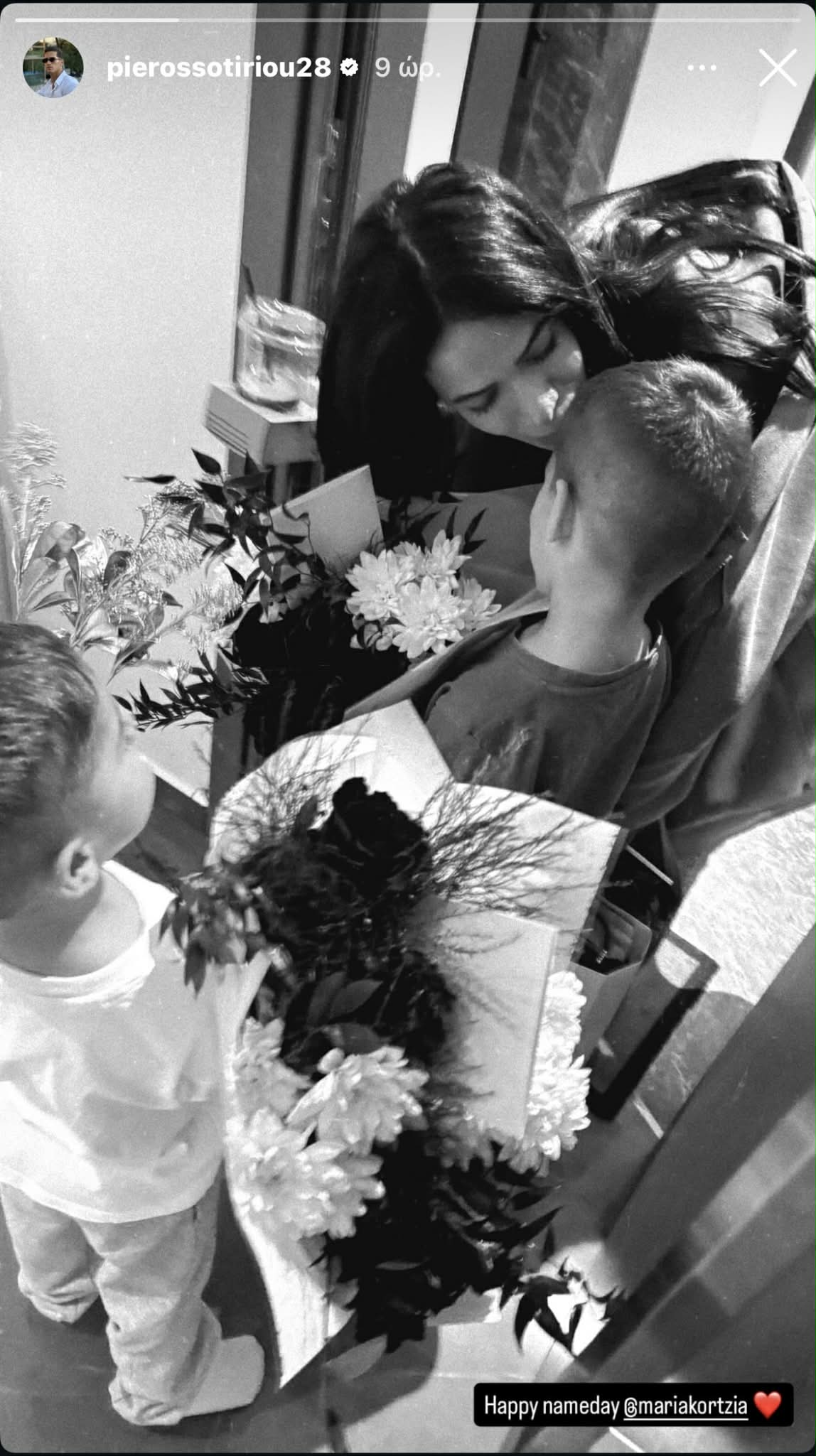 Ο ίδιος μοιράστηκε με τους διαδικτυακούς του φίλους, ένα γλυκό στιγμιότυπο των δυο τους παιδιών, Σοφοκλή και Γιώργο, στο οποίο οι μικροί προσφέρουν ο καθένας από μια ανθοδέσμη στη μαμά τους.