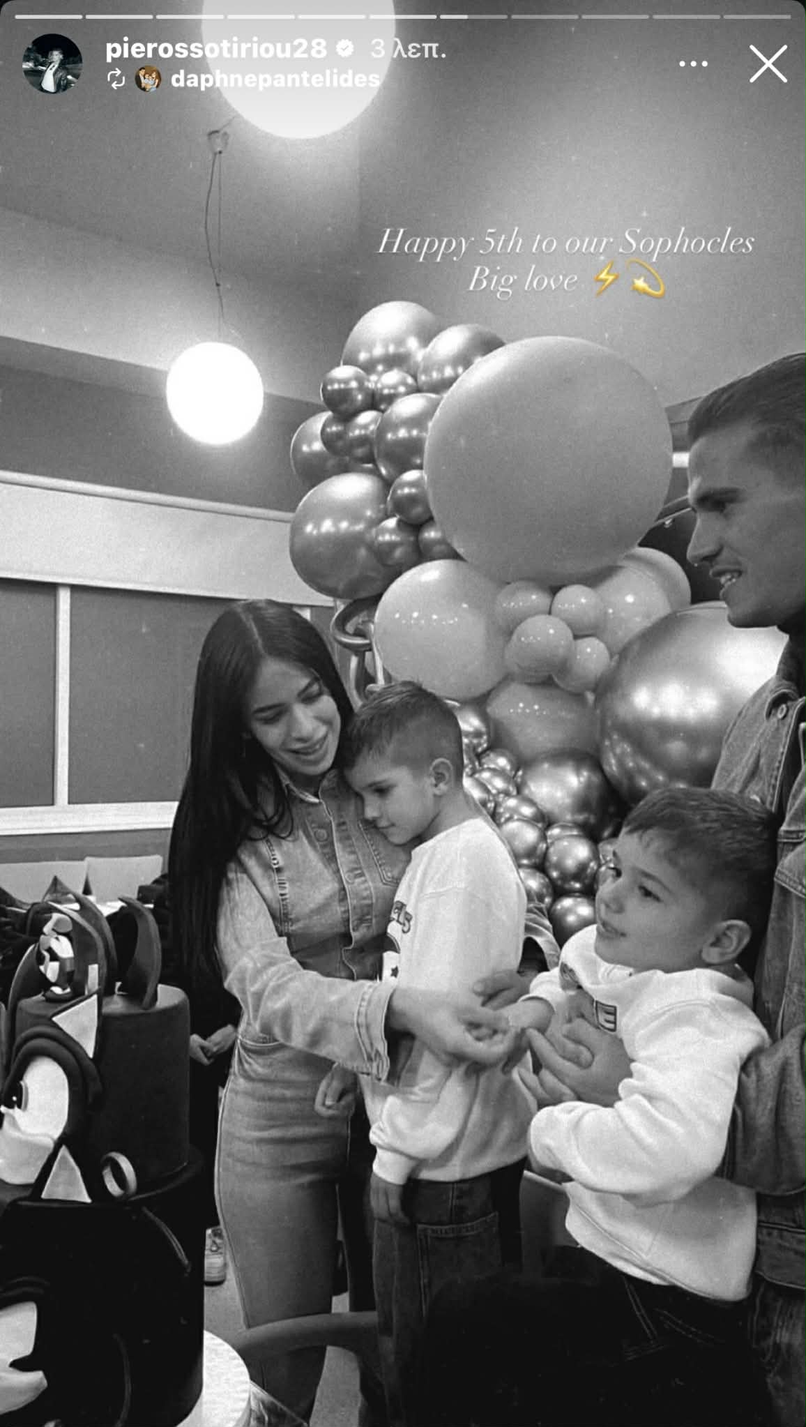 Το αγαπημένο ζευγάρι της κυπριακής showbiz, μοιράστηκε όμορφα στιγμιότυπα από το πάρτι με τον μικρό Σοφοκλή να σβήνει τα κεράκια της τούρτας του, έχοντας στο πλευρό του, την μητέρα του, τον πατέρα του και τον μικρό του αδερφό, Γιώργο.