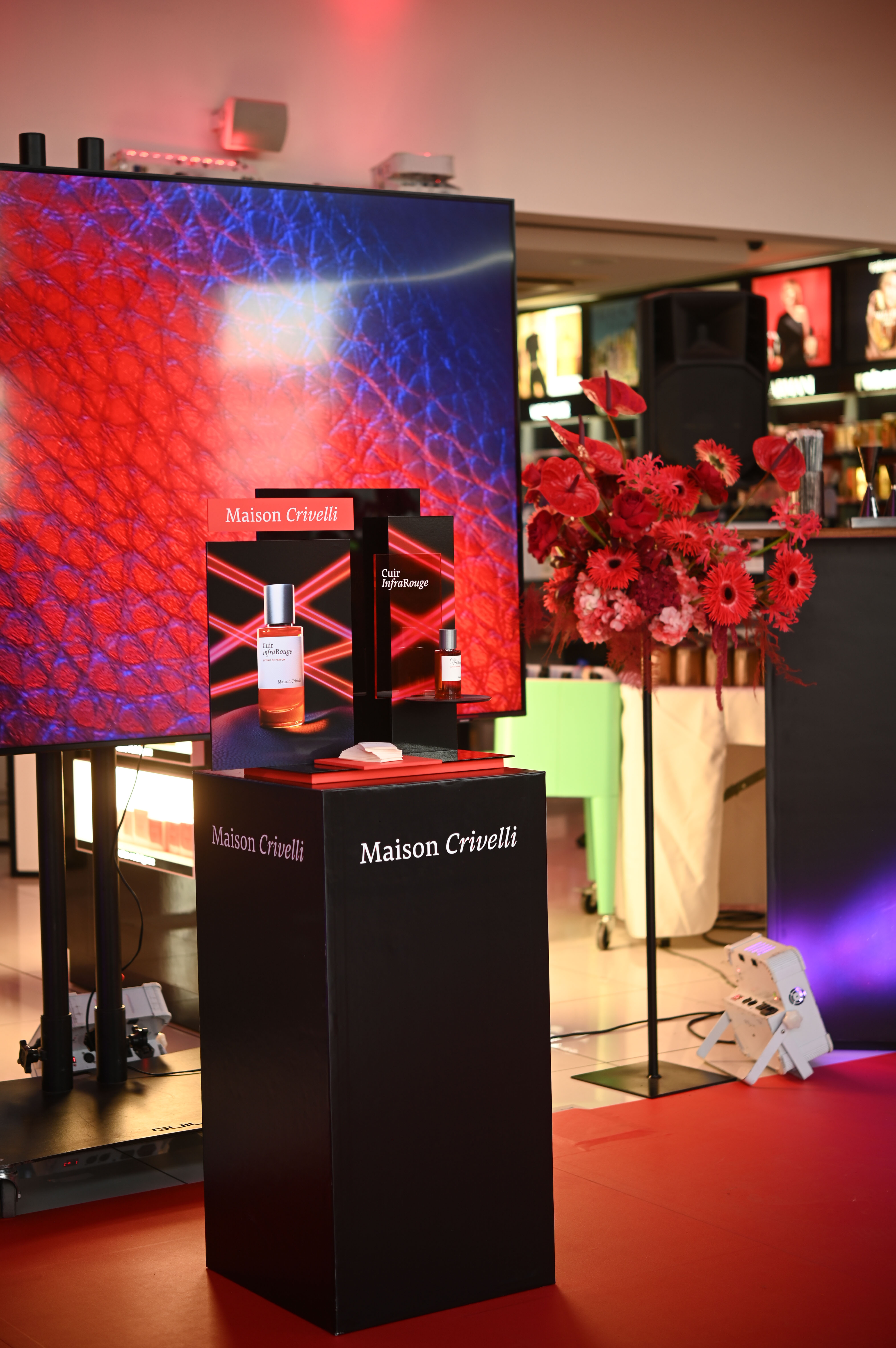 Κατά τη διάρκεια της εκδήλωσης, οι παρευρισκόμενοι είχαν την ευκαιρία να μυηθούν στις νότες και τη σύνθεση του Cuir InfraRouge, που συνδυάζει φρέσκα, φρουτώδη στοιχεία βατόμουρου με θερμές, έντονες νότες δέρματος και ξύλων. Ιδιαίτερη τιμή αποτέλεσε η παρουσία της Lisa Belhassen, Area Manager Ευρώπης του Maison Crivelli, η οποία μίλησε για τον οίκο και την έμπνευση πίσω από το άρωμα, παρουσιάζοντας τη διαδικασία δημιουργίας και τα χαρακτηριστικά που το καθιστούν μοναδικό.