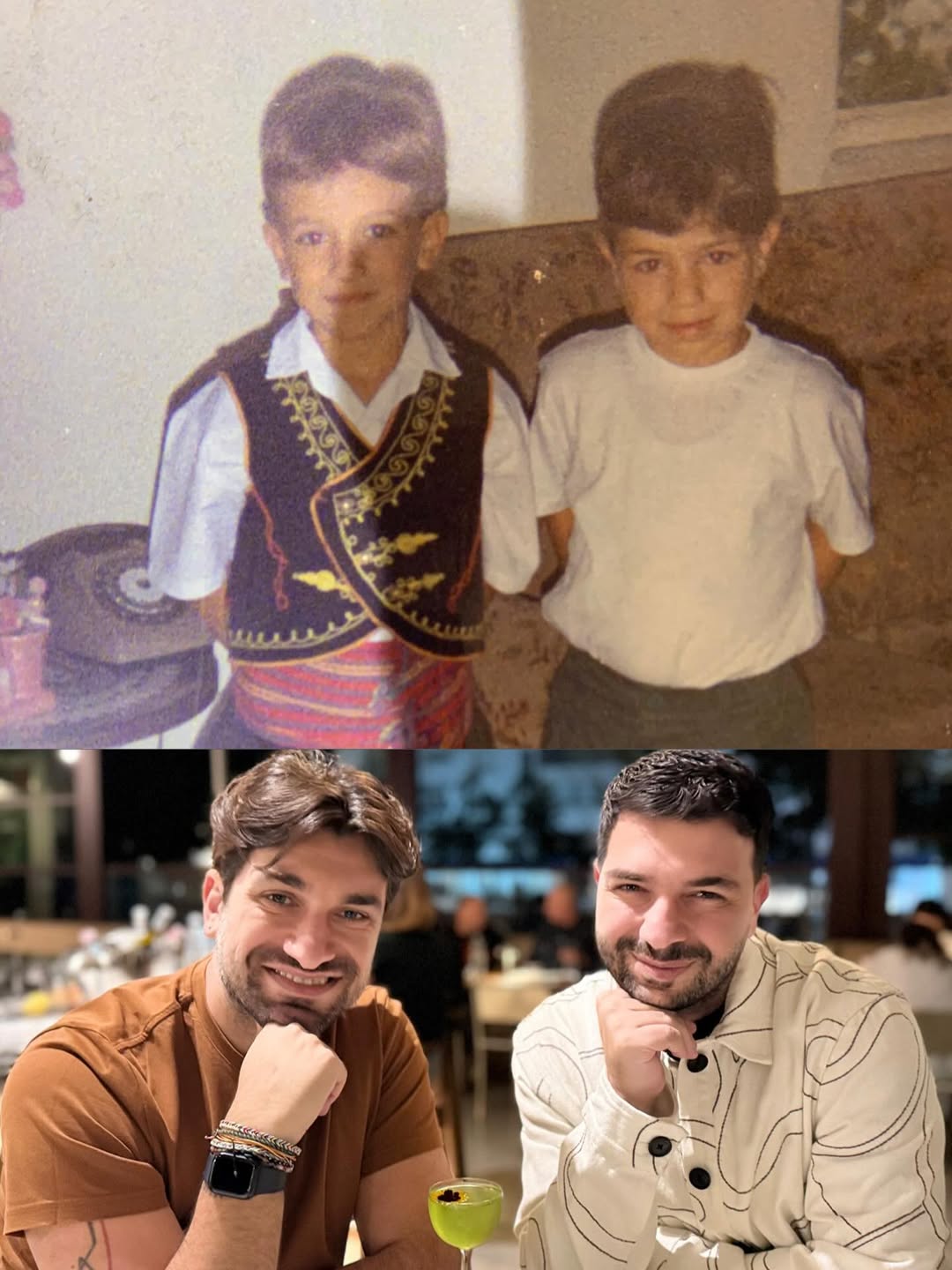Στο πάνω μέρος της εικόνας, ο γνωστός Κύπριος δημοσιογράφος επέλεξε να δημοσιεύσει ένα στιγμιότυπο από την παιδική τους ηλικίας, ενώ στο κάτω μέρος τοποθέτησε ένα πρόσφατο στιγμιότυπο τους.