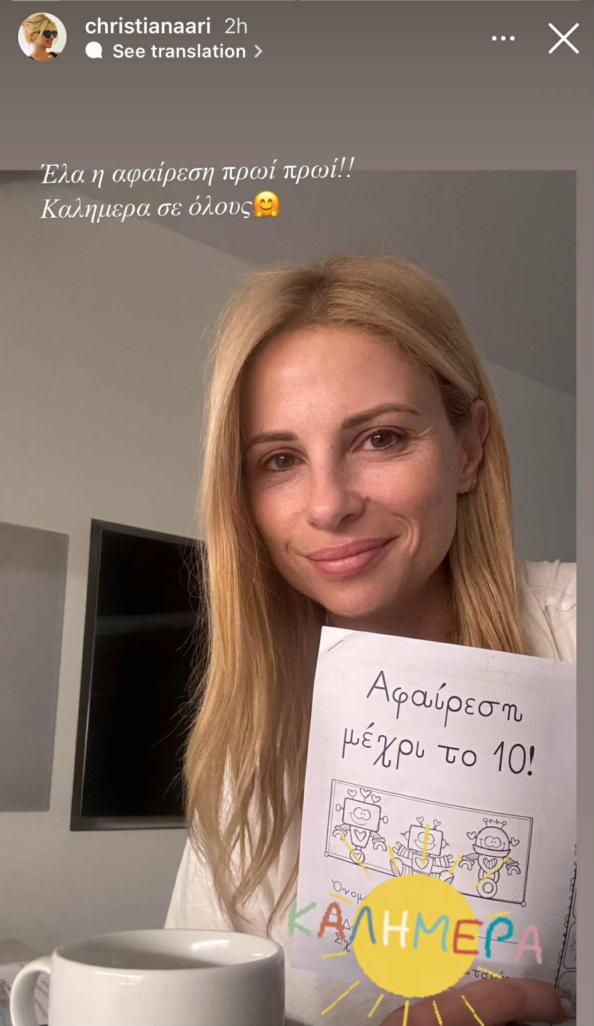 Η Χριστιάνα Αριστοτέλους το πρωί της Τρίτης, 21 Οκτωβρίου ανήρτησε σε story στον προσωπικό της λογαριασμό στο instagram μία εικόνα από το σπίτι, όπου μας δείχνει το homework της κόρης της, η οποία φοιτά στη Δευτέρα δημοτικού.