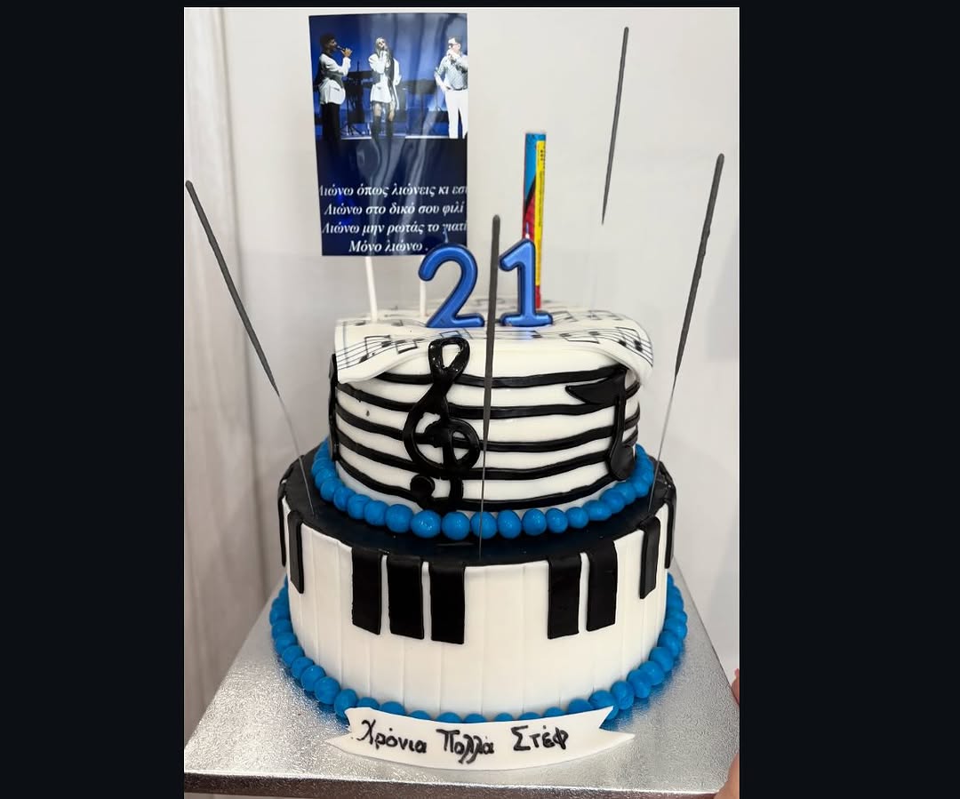 Σε αυτήν, ο νεαρός καλλιτέχνης είχε ανεβάσει φωτογραφία την τούρτα του, πάνω στην οποία υπήρχε εικόνα από τη συνεργασία που είχε με τον Γιώργο Μαζωνάκη.